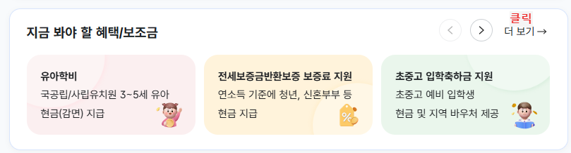 👉 정부24 → 지금 봐야 할 혜택/보조금 탭 더 보기 클릭→ 임산부 교통비 지원 검색 → 지자체 선택 → 신청하기