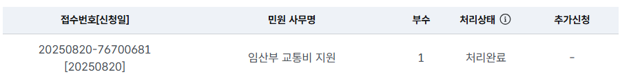 - 맘 편한 임신 통합제공 서비스에서 임산부 등록 후, 정부 24에서 신청 가능
