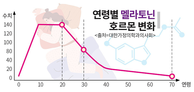 40대 이후부터는 자연스럽게 멜라토닌 분비량이 줄어듭니다.