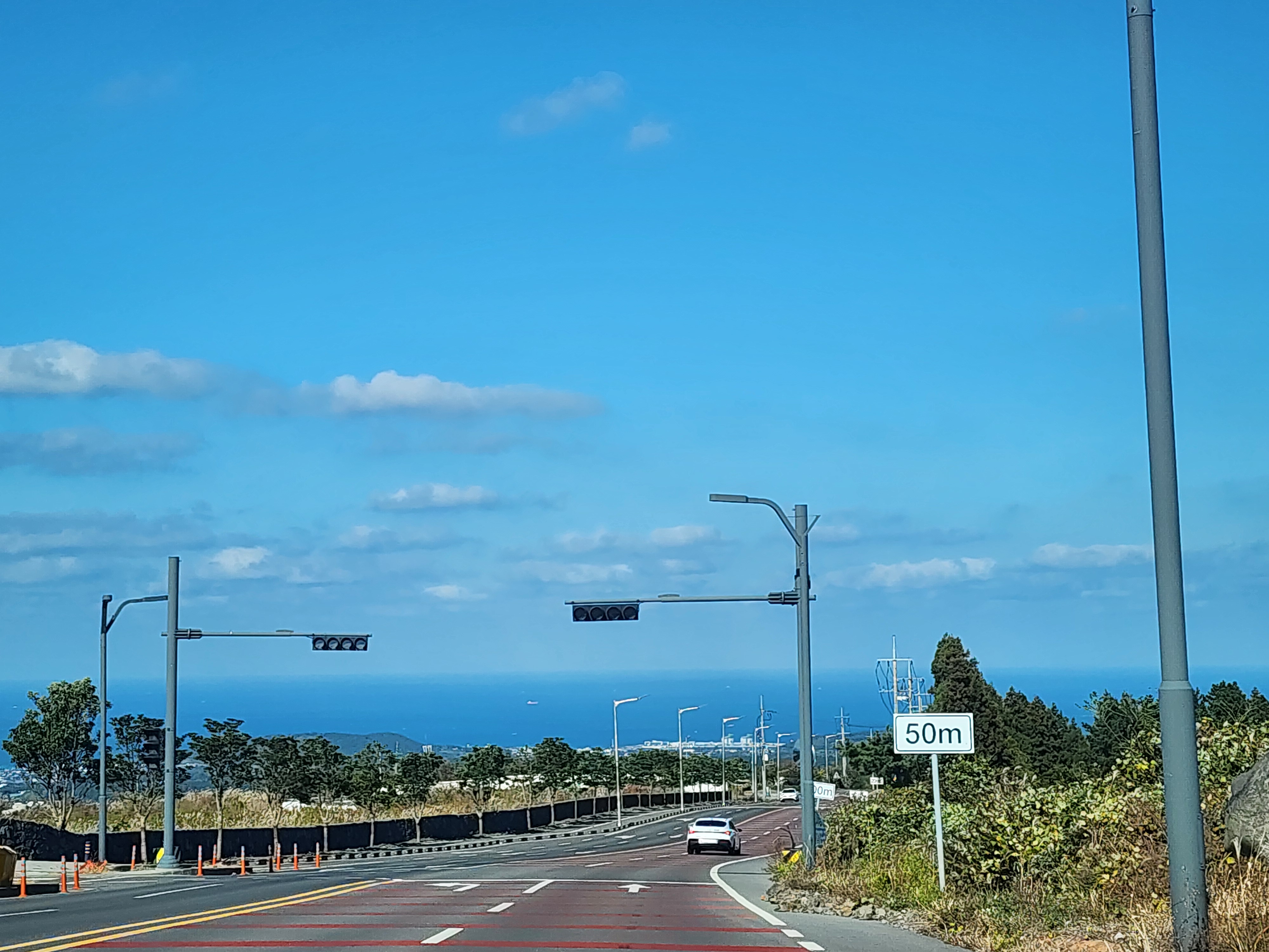 차를 타고 가는 내내 화창한 하늘과 저 멀리 보이는 바다가 시야에 들어왔다.